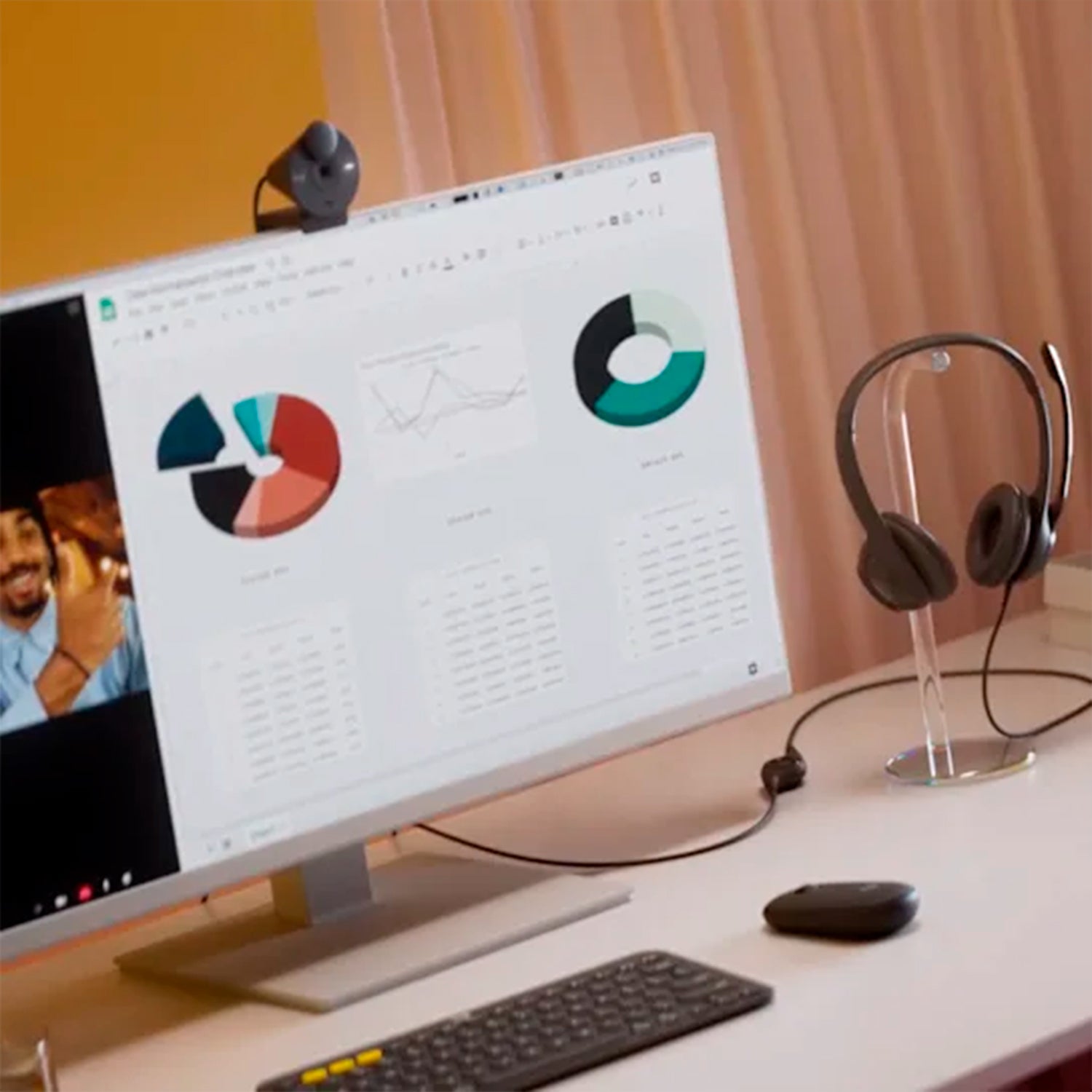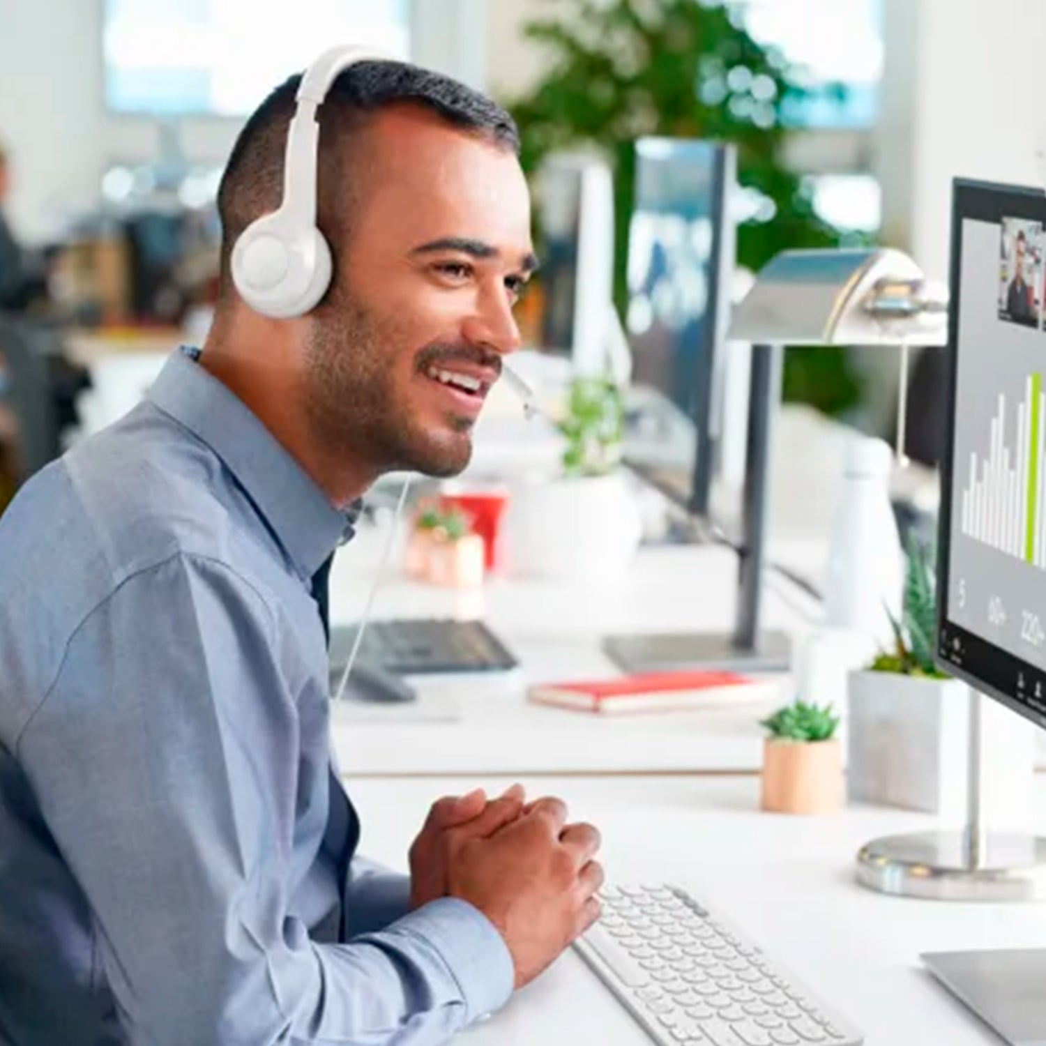 - Requisitos: Funciona con computadoras Windows, Mac o ChromeOS a través del puerto USB disponible (puerto USB-A o USB-C , según el modelo que compres). Compatible con aplicaciones comunes de llamadas y reuniones por video.