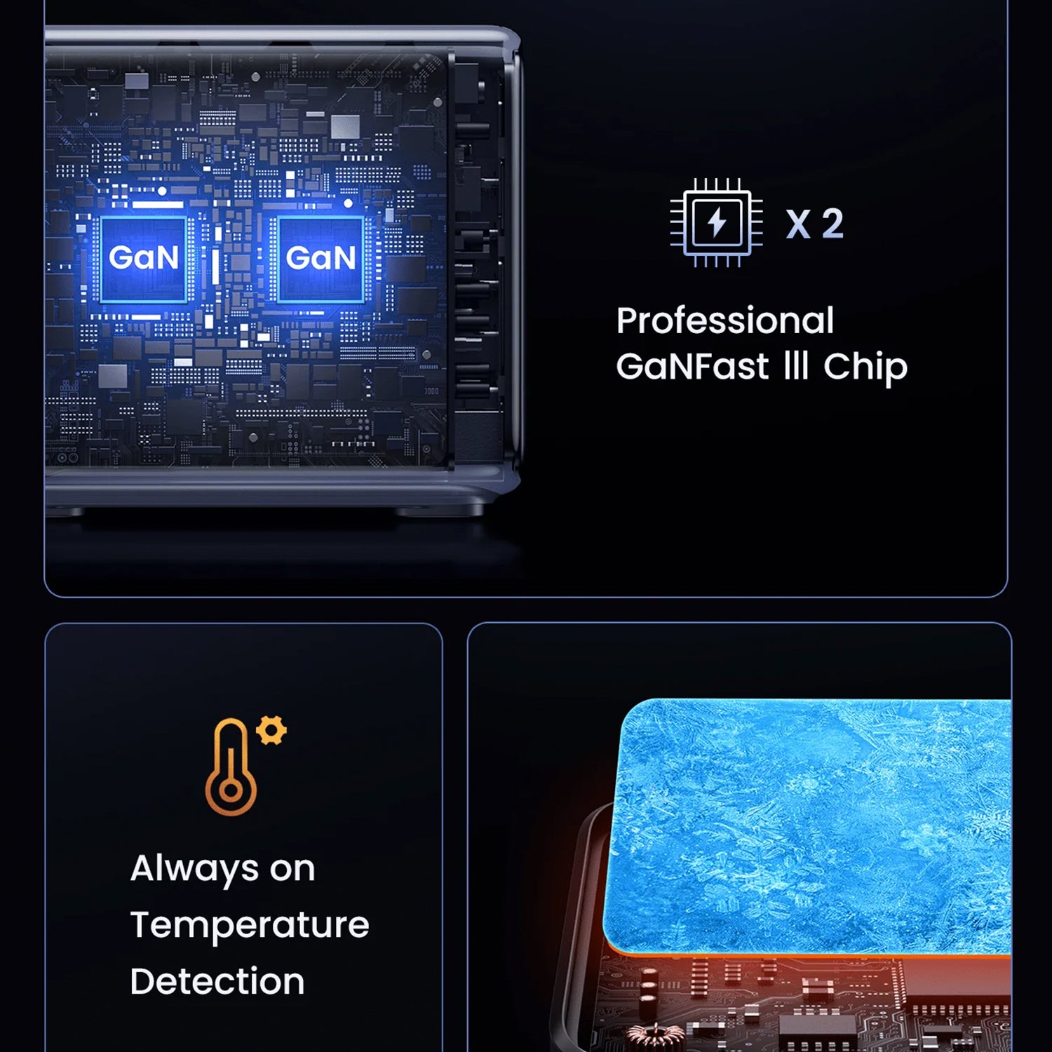 - Chips avanzados: Dos chips de GaN incorporados aportan energía potente y un excelente rendimiento de refrigeración.