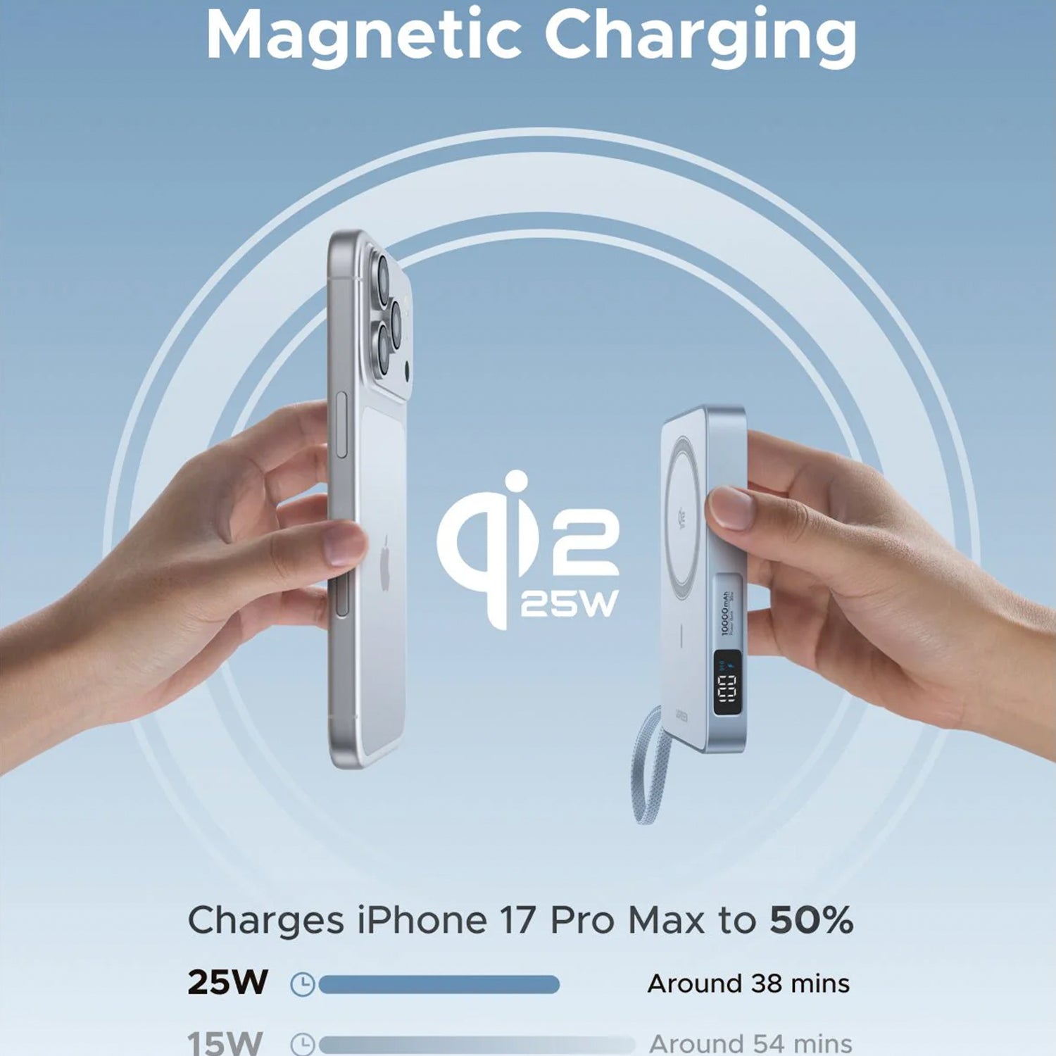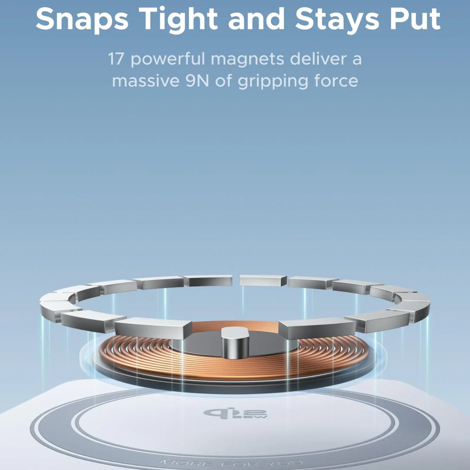 • 17 imanes potentes: Encendido a presión de 1 segundo con alineación perfecta, lo que garantiza una carga estable en cualquier lugar.