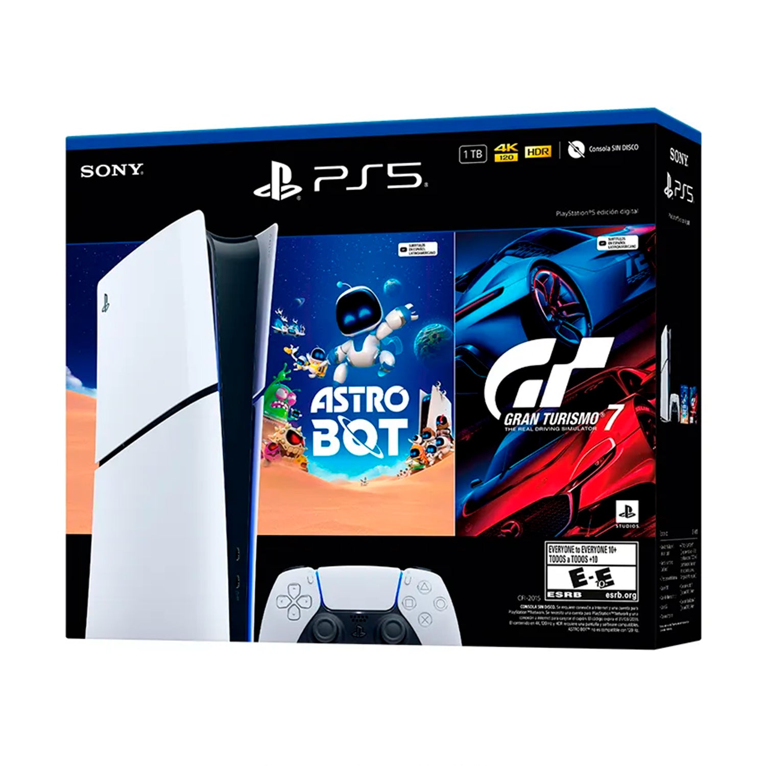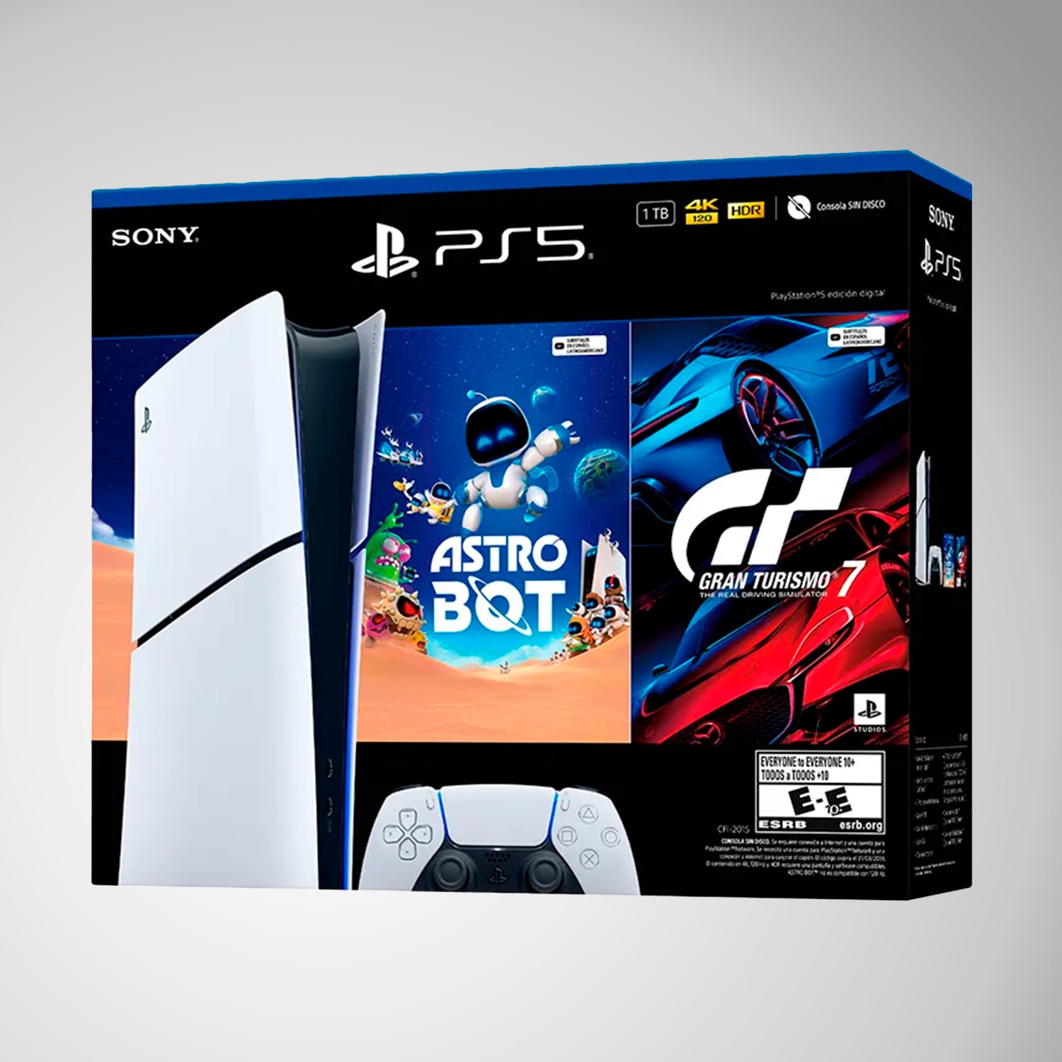 El paquete de edición digital de PlayStation 5 - Astro Bot y Gran Turismo 7, libera aún más posibilidades de juego. Este paquete de gran valor incluye dos juegos aclamados por la crítica de PlayStation Studios; Astro Bot y Gran Turismo 7.