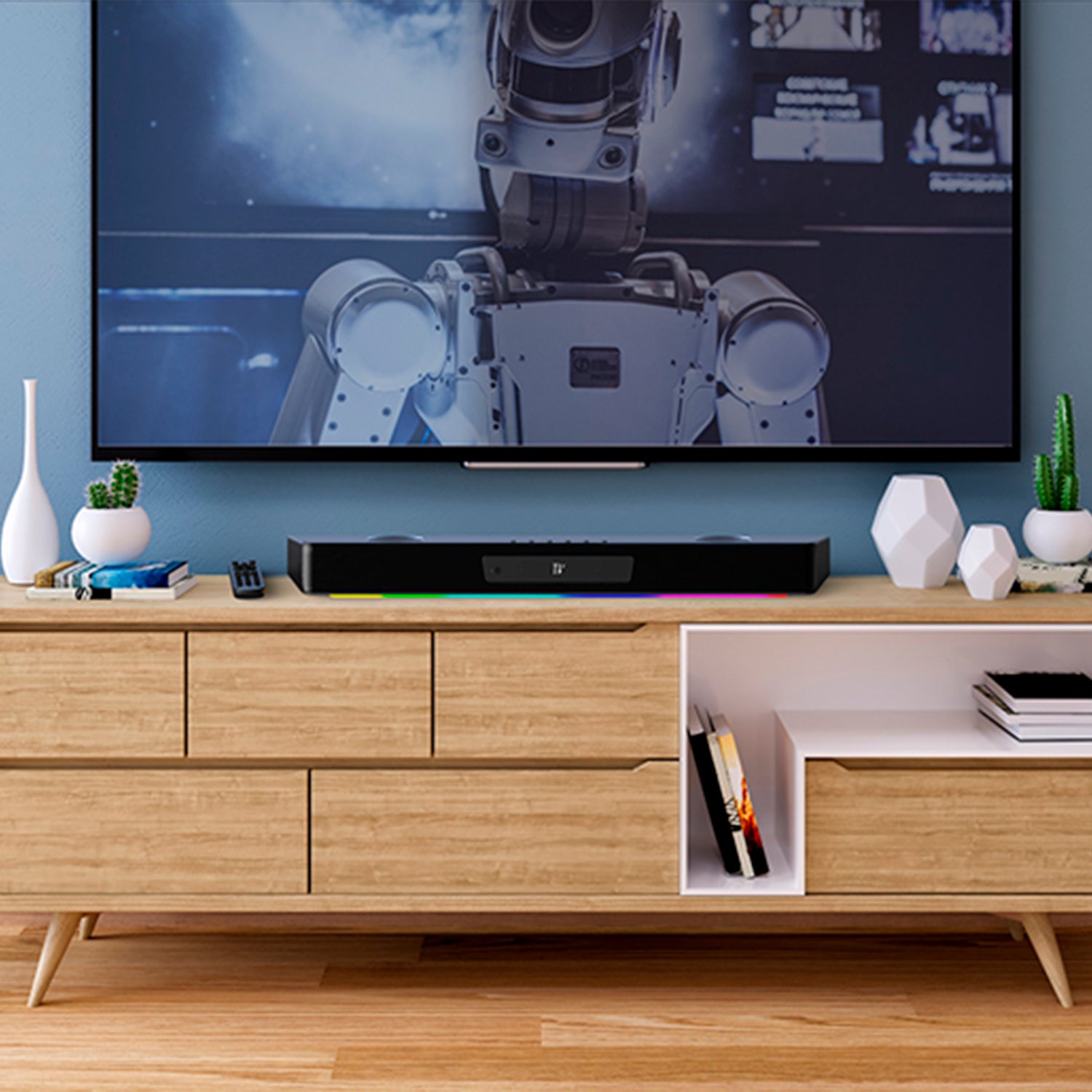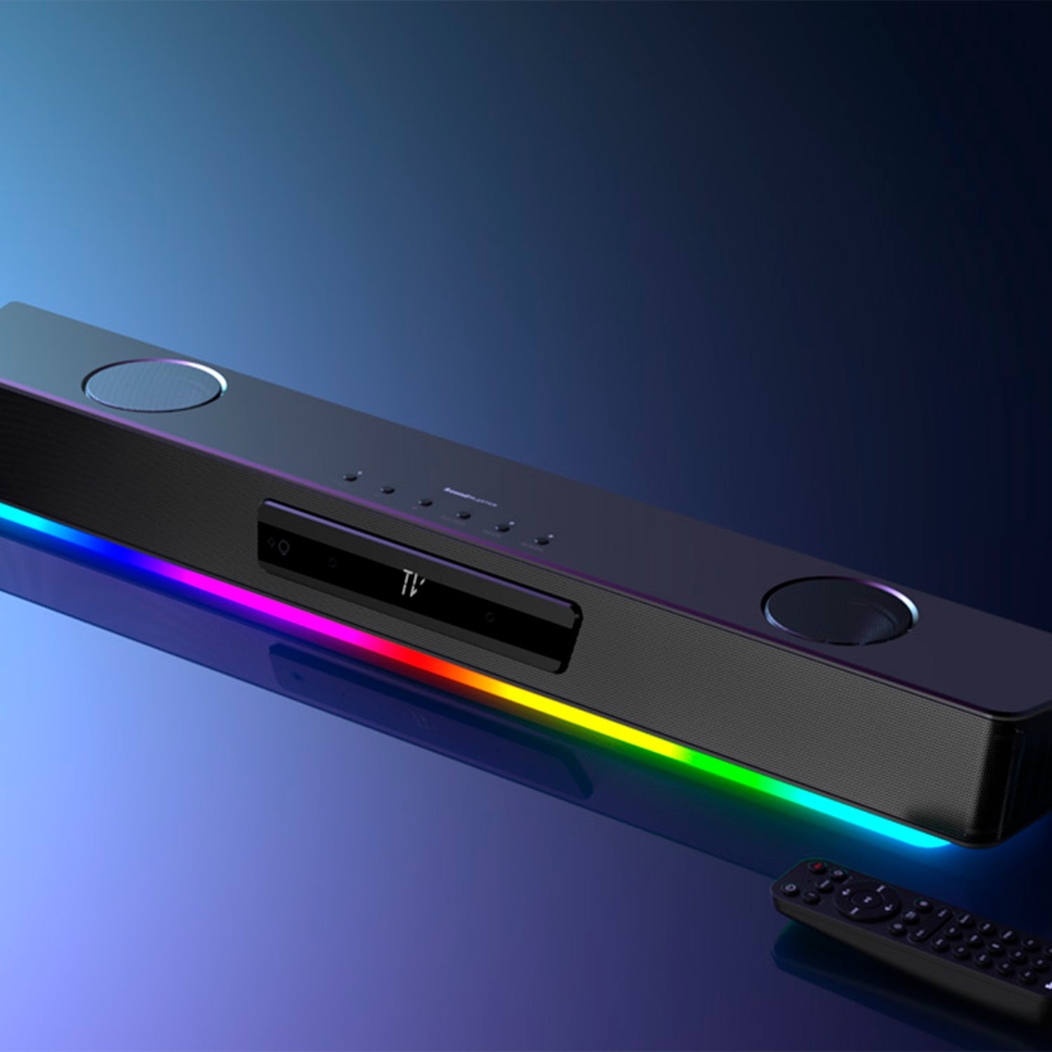 El Sound Blaster Katana V2X ofrece un sonido cristalino e impresionante que llena la habitación con su reproducción de 5.1 canales. Al igual que su predecesor, el Sound Blaster Katana V2X también es un Dolby Audio certificado1 decodificador, para que pueda recrear la experiencia cinematográfica familiar en la comodidad de su propio hogar desde una fuente certificada por Dolby.