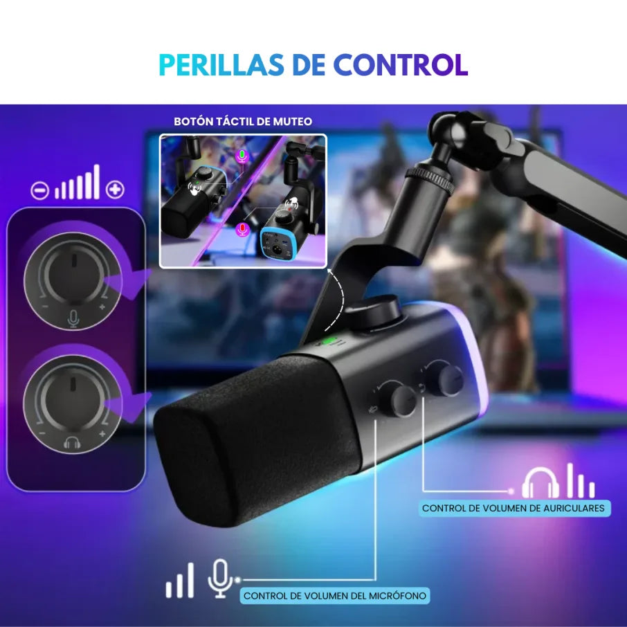• Controles integrados: Perilla de control (gain / volumen) para ajuste directo sin software adicional.