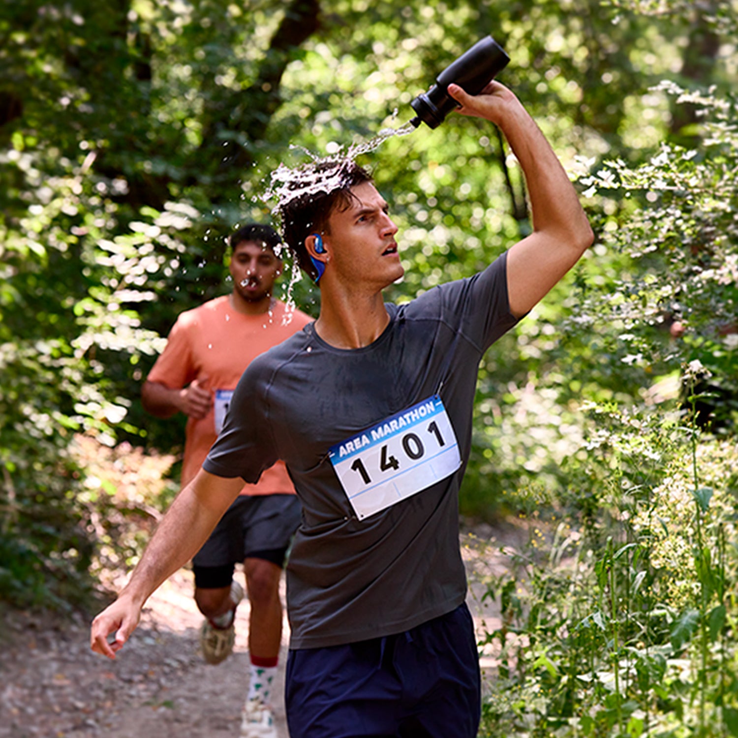 ¿Sudor, lluvia, agua salada y arena? Suena divertido. Los auriculares JBL Endurance Pace cuentan con una clasificación IP68 de impermeabilidad y resistencia al polvo, por lo que pueden soportarlo todo. Por no mencionar las altas temperaturas, la humedad o las caídas desde grandes alturas.
