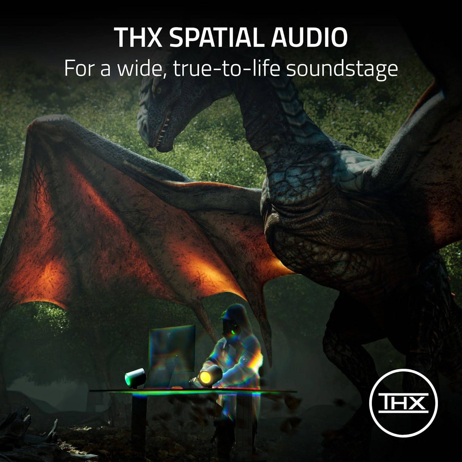 - THX SPATIAL AUDIO: El sonido envolvente avanzado 7.1 ofrece audio con precisión milimétrica, lo que permite un escenario de sonido más realista y detallado que hace que las películas, los juegos y la música realmente cobren vida