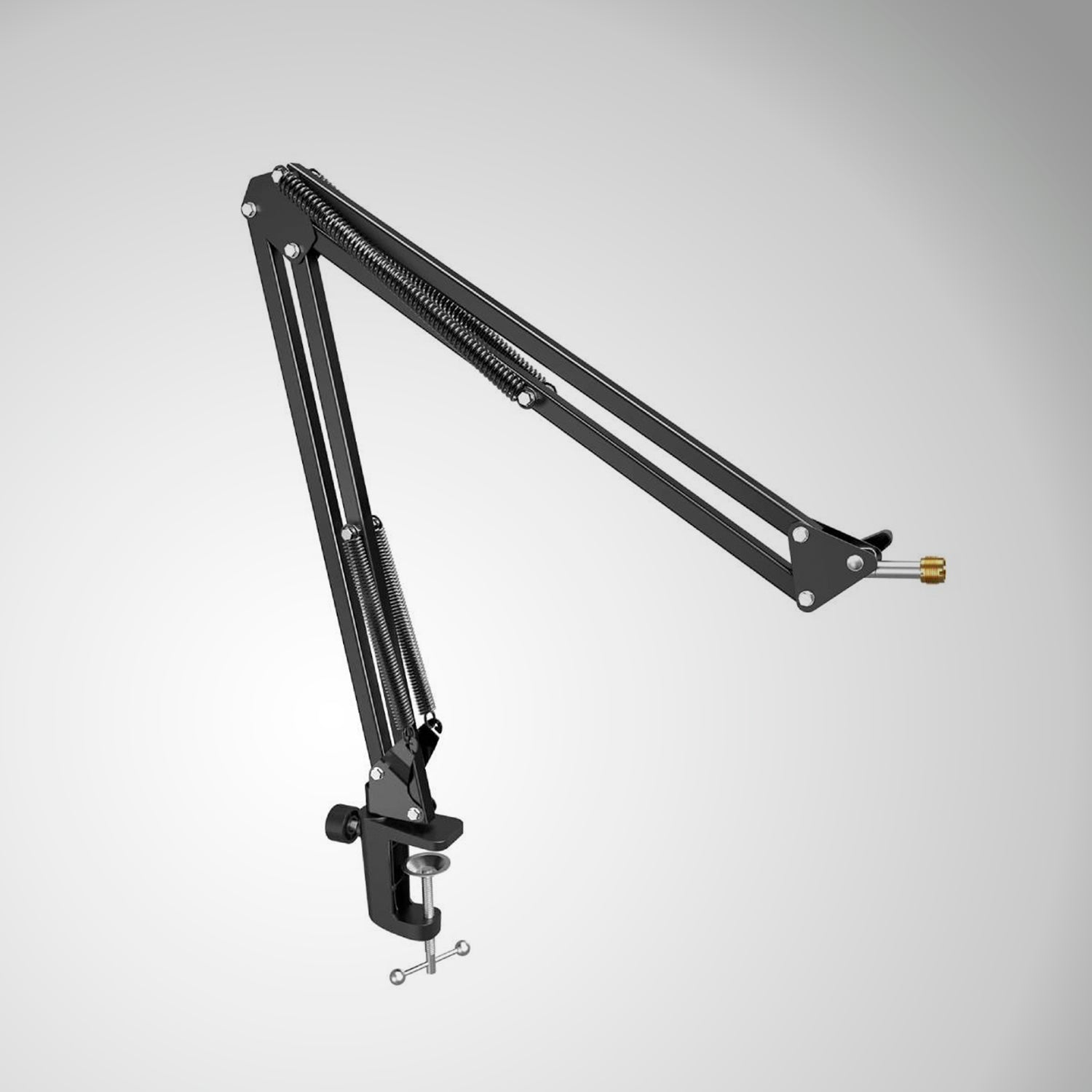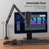 AJUSTABLE Y FLEXIBLE: el soporte de brazo de tijera de suspensión es totalmente ajustable en todas las partes. Los brazos del soporte de micrófono de escritorio son extensibles en 135° hacia adelante y hacia atrás, y 180° hacia arriba y hacia abajo, lo que te permite ajustar el ángulo y la altura adecuados para mostrar tu voz perfecta