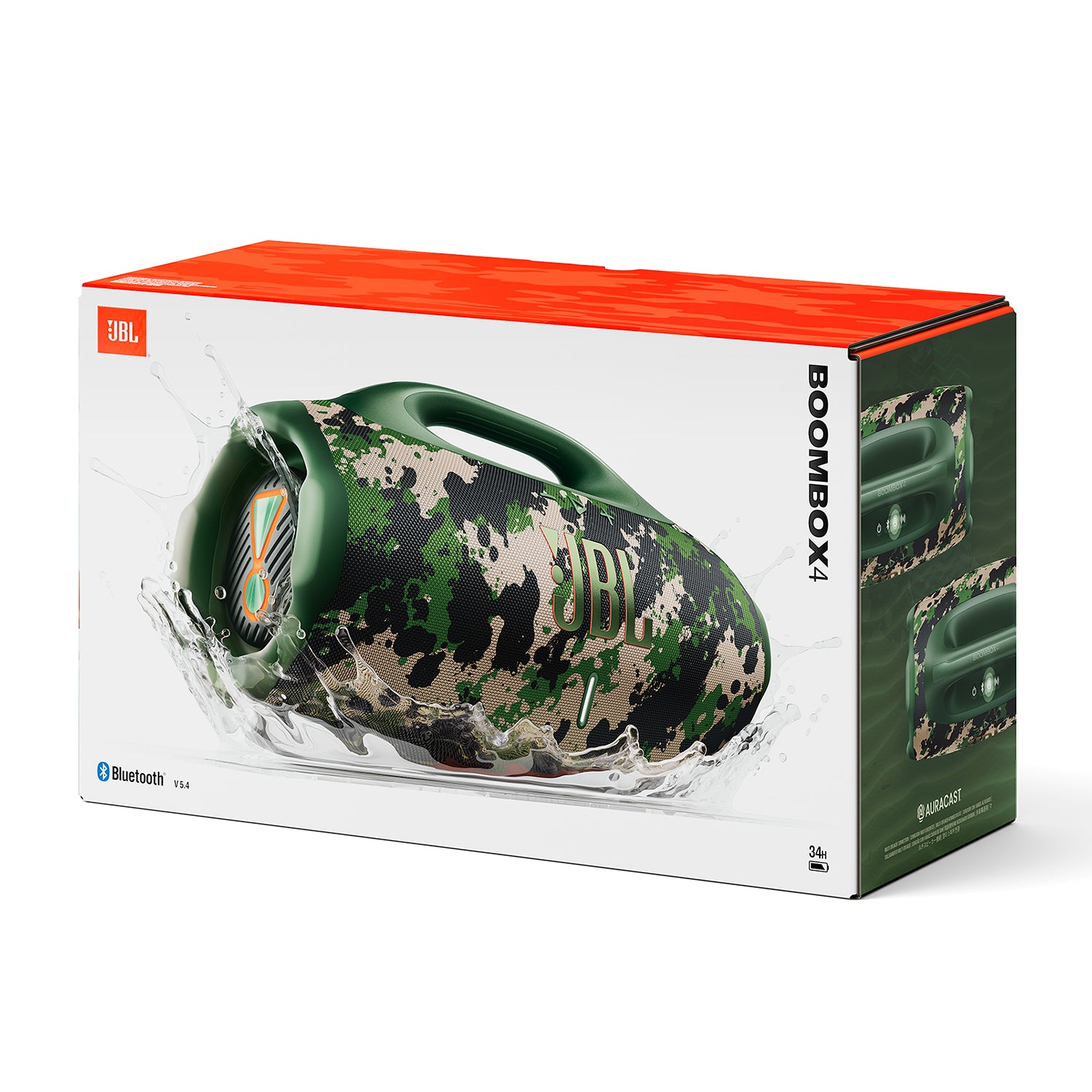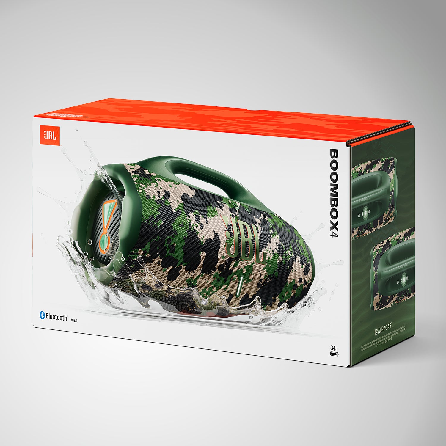 Disfrútalo a tú manera y en cualquier lugar. El nuevo JBL Boombox 4 es más grande, más audaz y mejor que nunca, con un potente sonido JBL Pro que se mantiene siempre alto y claro, con graves profundos y contundentes. AI Sound Boost analiza la música en tiempo real y ajusta el sonido para ofrecer más potencia con menos distorsión, incluso cuando se sube al máximo. Incorpora dos altavoces más grandes, dos altavoces de agudos y tres radiadores pasivos, para que cada canción suene más potente y nítida. Cuando quieras afinar las vibraciones, solo tienes que cambiar entre los ajustes de Bass Boost profundo o vibrante para adaptarlo a nuestro estado de ánimo. Hemos renovado el diseño clásico del Boombox: es más grande pero más ligero, para que podamos llevarlo donde quiera que vaya la fiesta: a la playa, a la calle o al jardín. Es resistente al agua y al polvo (IP68), así que el clima nunca será un impedimento. Y, con hasta 34 horas de reproducción (gracias a Playtime Boost), tendrás todo lo necesario para disfrutar durante todo el día. Con el JBL Boombox 4, puedes llevar tu energía allá donde vayas.
