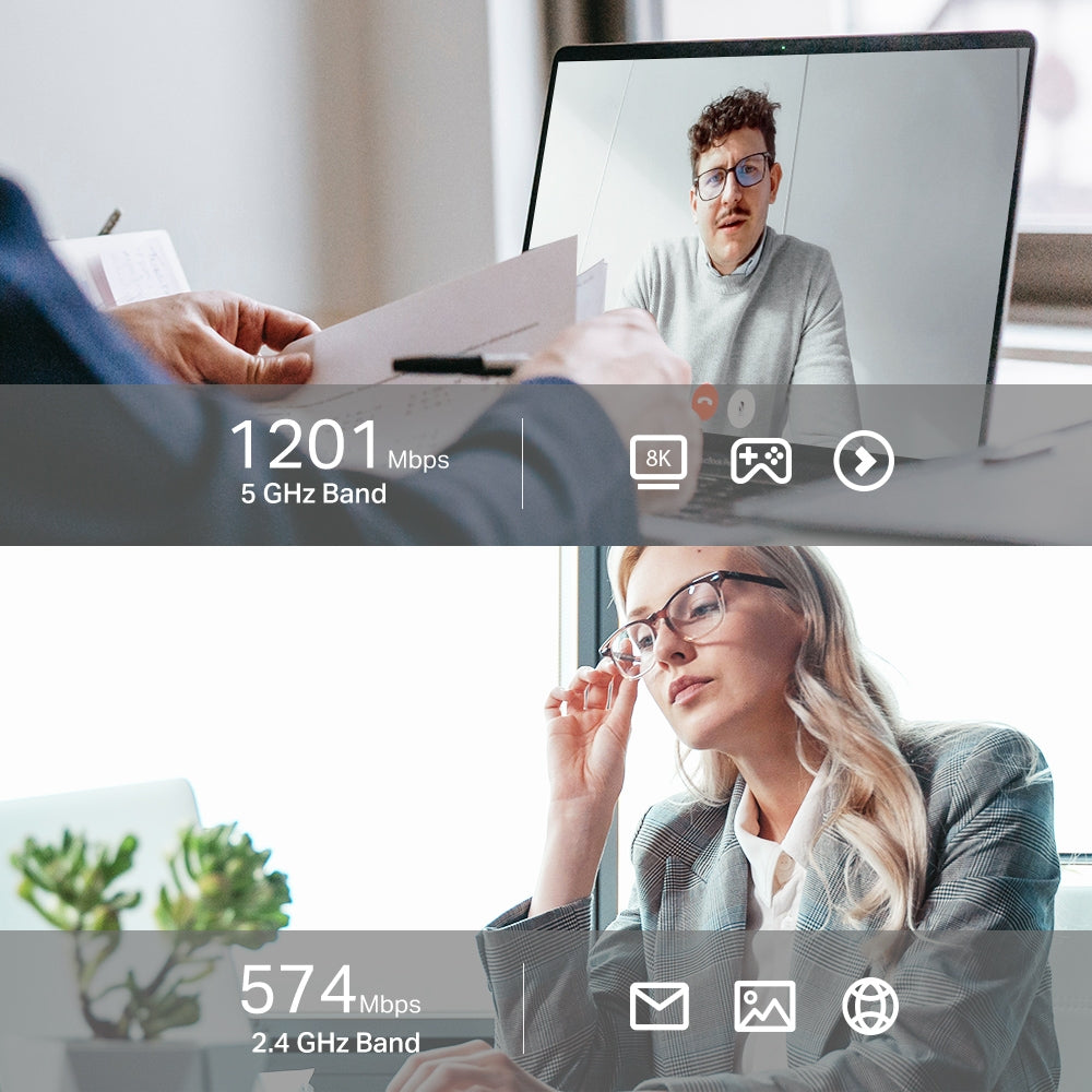 - WiFi 6 rápido: rompa la barrera del gigabit con velocidades de hasta 1201 Mbps (5 GHz) + 574 Mbps (2,4 GHz).