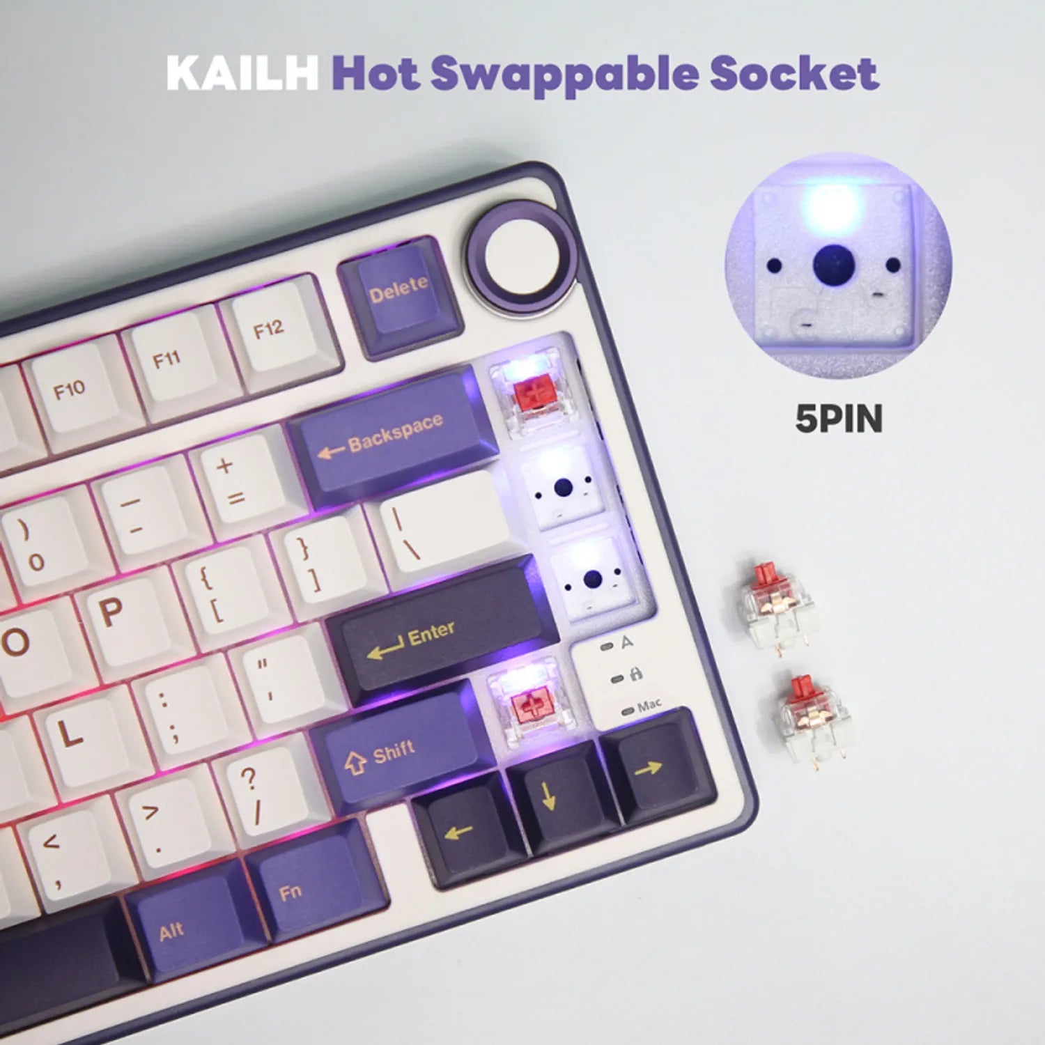 Diseñado para una experiencia de escritura premium, el RK R75 incorpora una estructura montada con junta que incluye tres capas de absorción de sonido y choque. Con algodón Poron, espuma IXPE y espuma esponjosa en la carcasa, el teclado minimiza vibraciones y ruido. Los estabilizadores prelubricados y la espuma silenciadora debajo de la barra espaciadora aseguran presiones de teclas suaves, ofreciendo una experiencia de escritura silenciosa, sensible y agradable desde el primer uso.