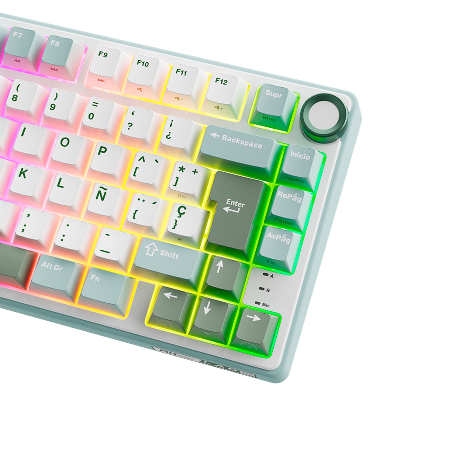 El teclado mecánico RK R75 presenta un diseño compacto del 75%, manteniendo las teclas esenciales de flecha y función, mientras optimiza el espacio en tu escritorio para un ambiente más limpio. La perilla de volumen de aluminio CNC ofrece un control preciso del audio, mejorando la eficiencia tanto en juegos como en trabajo. Su tamaño compacto lo convierte en la opción ideal para jugadores y profesionales que buscan alto rendimiento en un diseño elegante y que ahorra espacio.