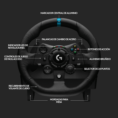 Driving Force afronta con aplomo la acción y está hecho para durar sin decepcionar. El eje del volante incluye cojinetes de acero. Las palancas de cambio y los pedales de acero inoxidable responden realmente bien al ejercer presión. El volante forrado en cuero de alta calidad cosido a mano emula la sensación de un coche deportivo auténtico. Controla tu coche con un volante para una experiencia más genuina, confortable y duradera.