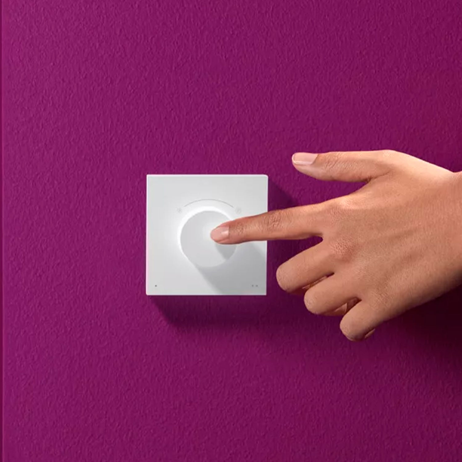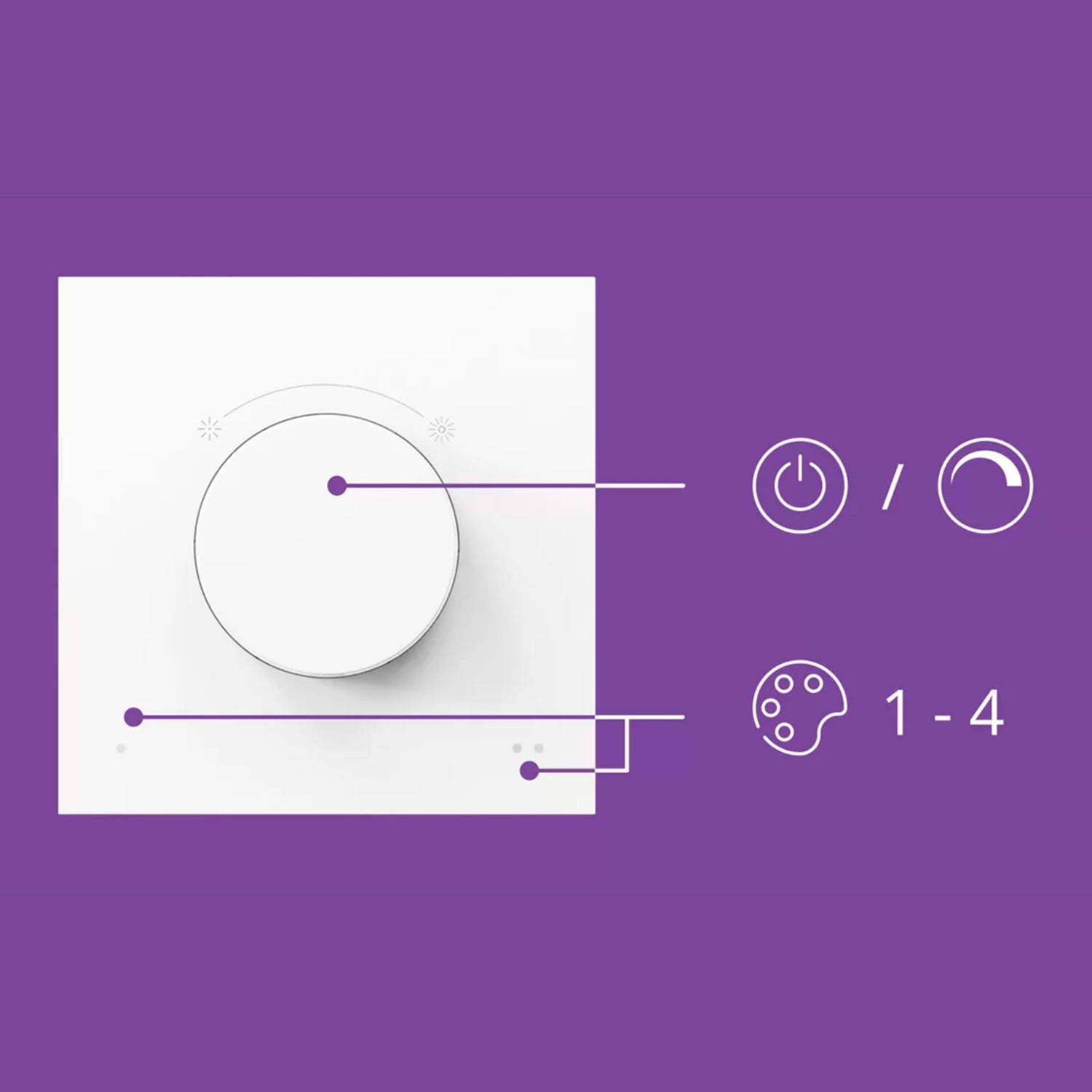 Utiliza el mando giratorio para un encendido y apagado rápidos y una atenuación suave, o toca el panel para cambiar entre tus escenas de iluminación favoritas.