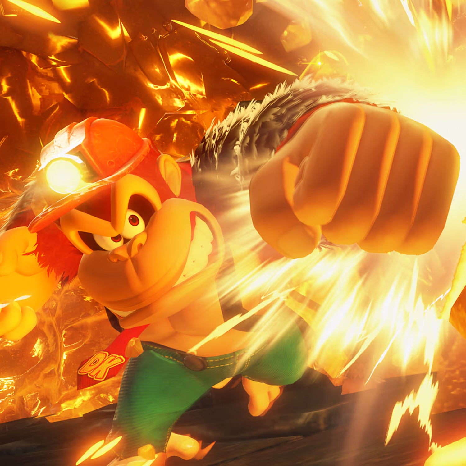 DK no anda precisamente escaso de cosas que pueda pulverizar con sus potentísimos puñetazos.