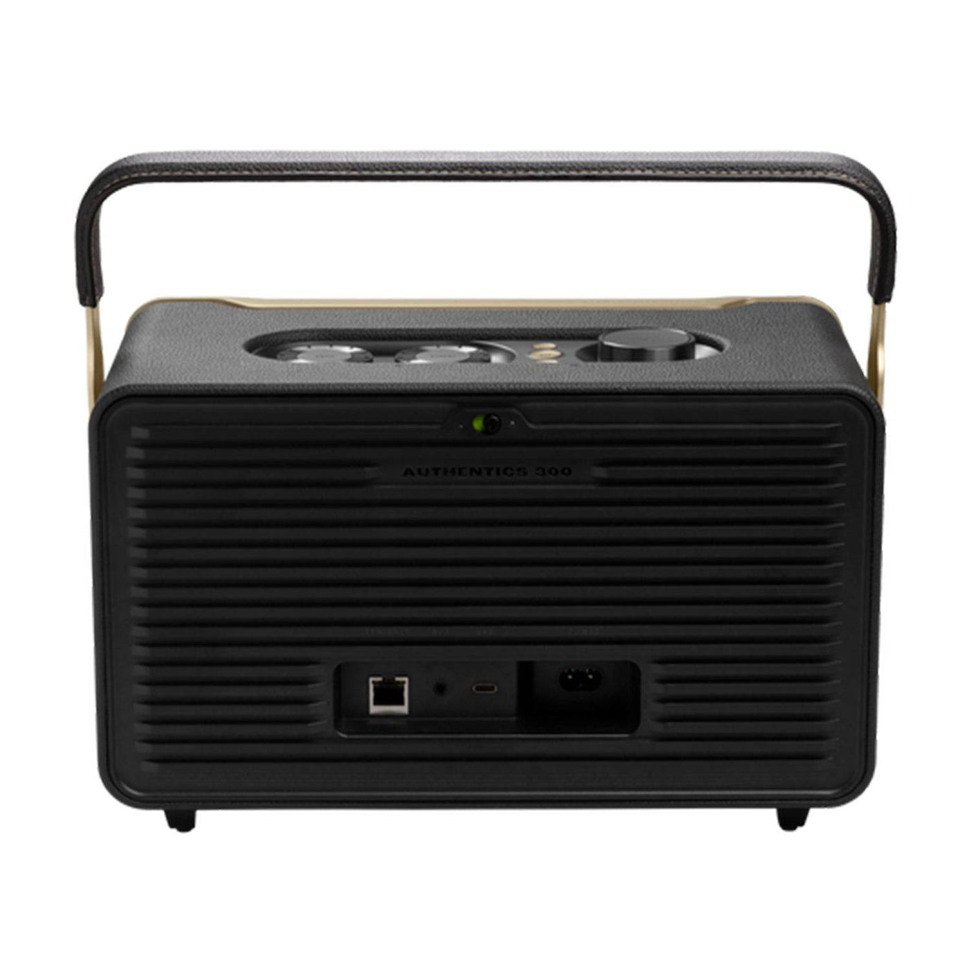 JBL Authentics 300 ofrece un estilo icónico inspirado en los diseños retro clásicos de JBL, en un altavoz portátil que queda genial en cualquier entorno. Llenará fácilmente cualquier espacio con un sonido JBL superior, por grande o pequeño que sea. Además, la práctica asa de aluminio premium del altavoz, el receptáculo de piel personalizado y la rejilla Quadrex reinventada muestran la atención que prestamos a cada detalle visual, hasta el patrón especial característico de JBL que rodea el radiador pasivo de proyección descendente.