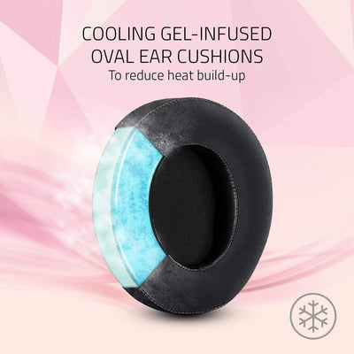 Para llevar la comodidad al siguiente nivel, hemos agregado almohadillas para los oídos con infusión de gel refrescante para reducir la acumulación de calor. La combinación de tela suave y cuero sintético brinda una sensación de felpa y aislamiento acústico que le permite disfrutar de largas maratones de juego.