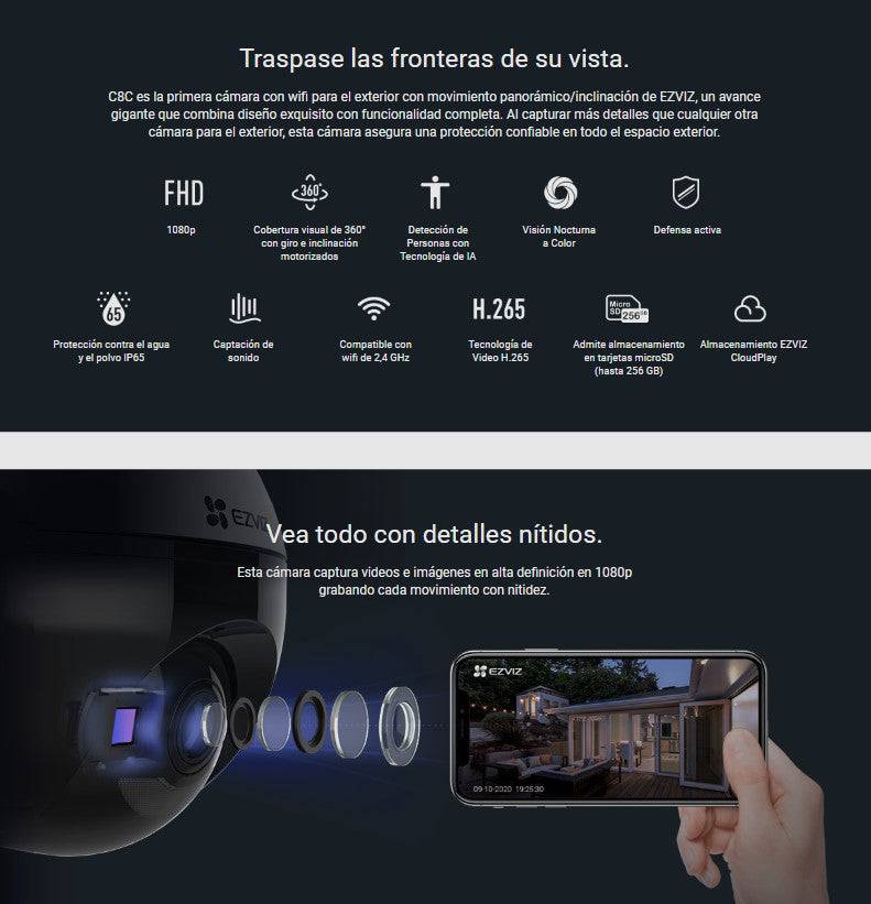 Camara de Seguridad Inteligente Ezviz C8C Lite exterior - 2MP - Vista 360° - Lente 4MM