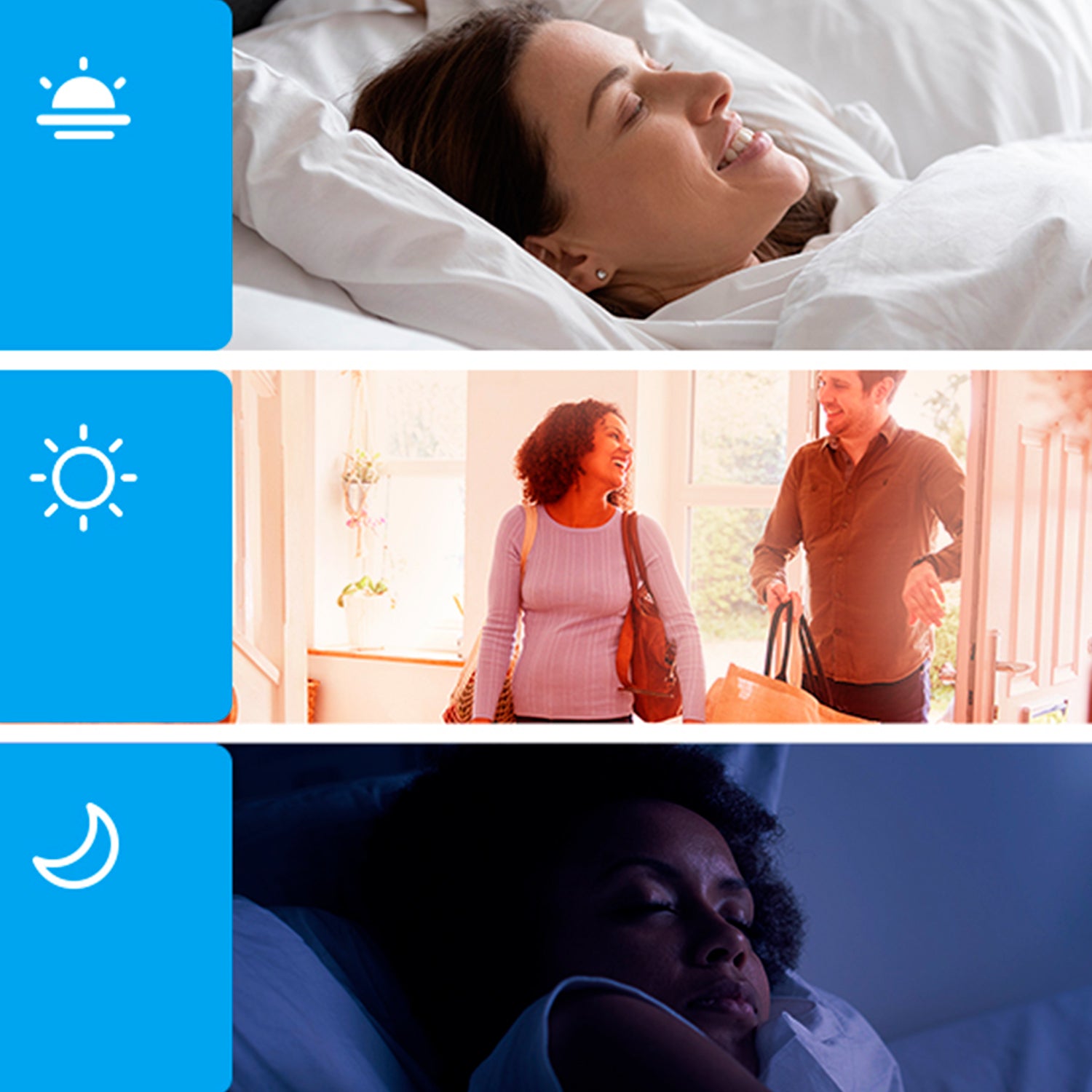 Elija entre cuatro modos de iluminación predefinidos para armonizarlos con sus rutinas diarias o estados de ánimo en un momento dado. Incluso puede personalizar cada escena a su gusto.