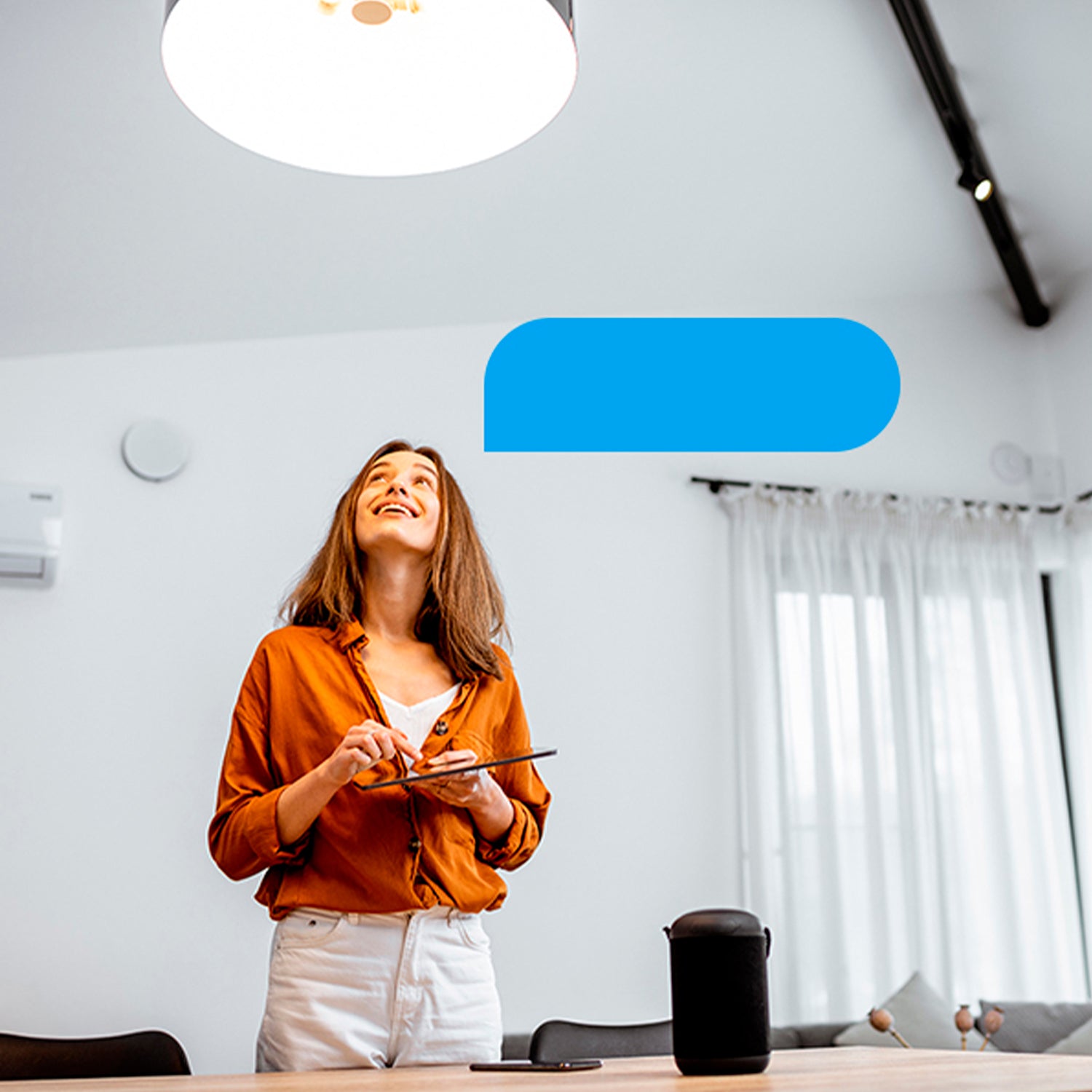 ¿Tiene las manos ocupadas? ¡No hay problema! ¡Pídale a Alexa o al Asistente de Google que encienda o apague las luces o que ajuste el brillo!