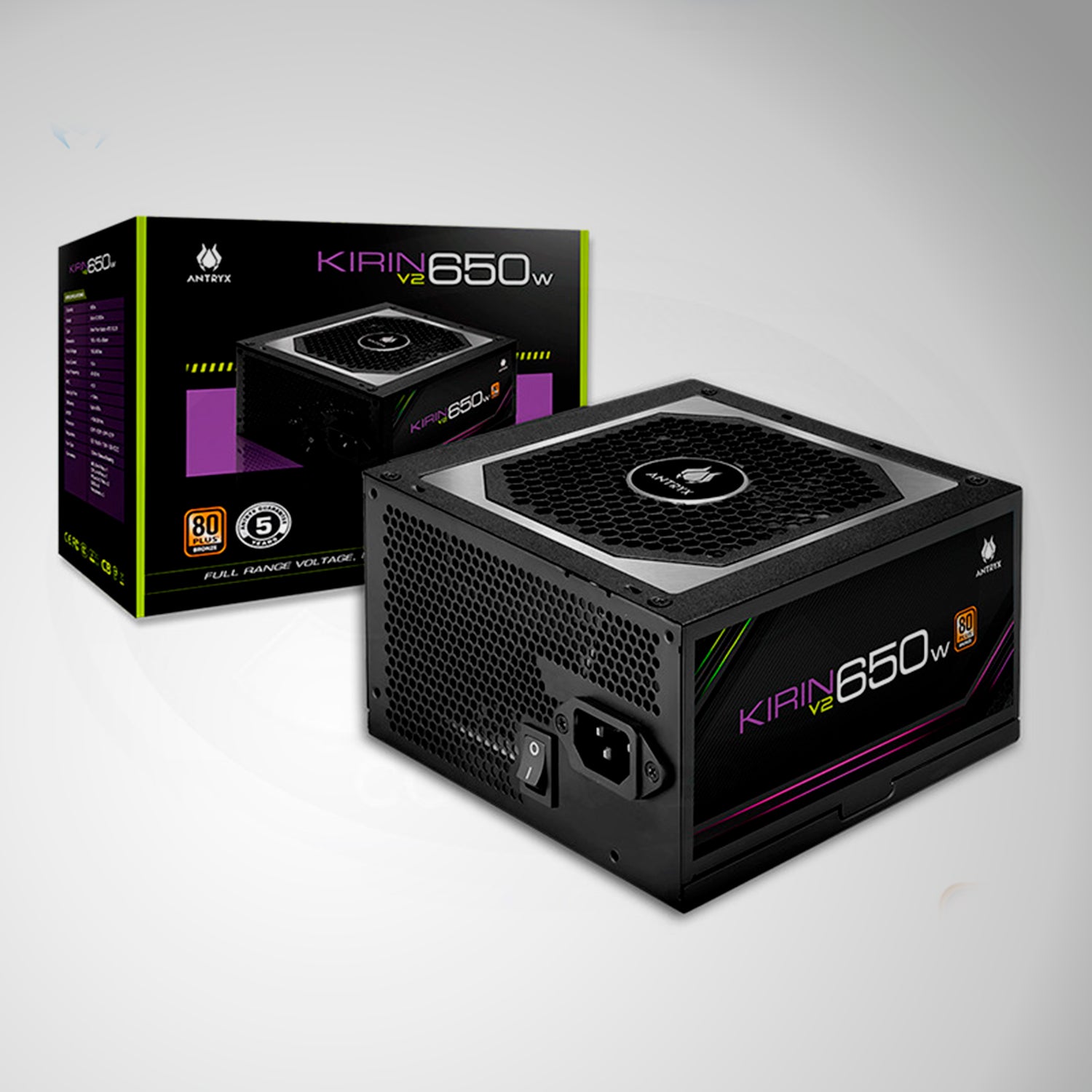 - Certificación 80 Plus Bronze, define el compromiso de Antryx con el diseño y la producción de fuentes de alimentación ecológicas