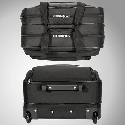 - La manija telescópica se repliega en un compartimiento con cierre cuando no está en uso.