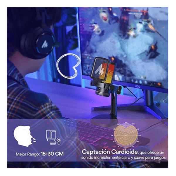 Micrófono Gamer Maono DGM20S USB RGB con Reducción de Ruido y Sonido Profesional