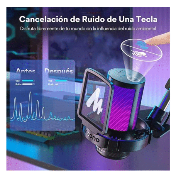 El Micrófono Gamer Maono DGM20S es la elección ideal para streamers, gamers y creadores de contenido que buscan un audio claro y profesional. Su tecnología de condensador con patrón polar cardioide garantiza una captura de voz precisa, mientras que la reducción de ruido con un solo toque elimina sonidos no deseados.