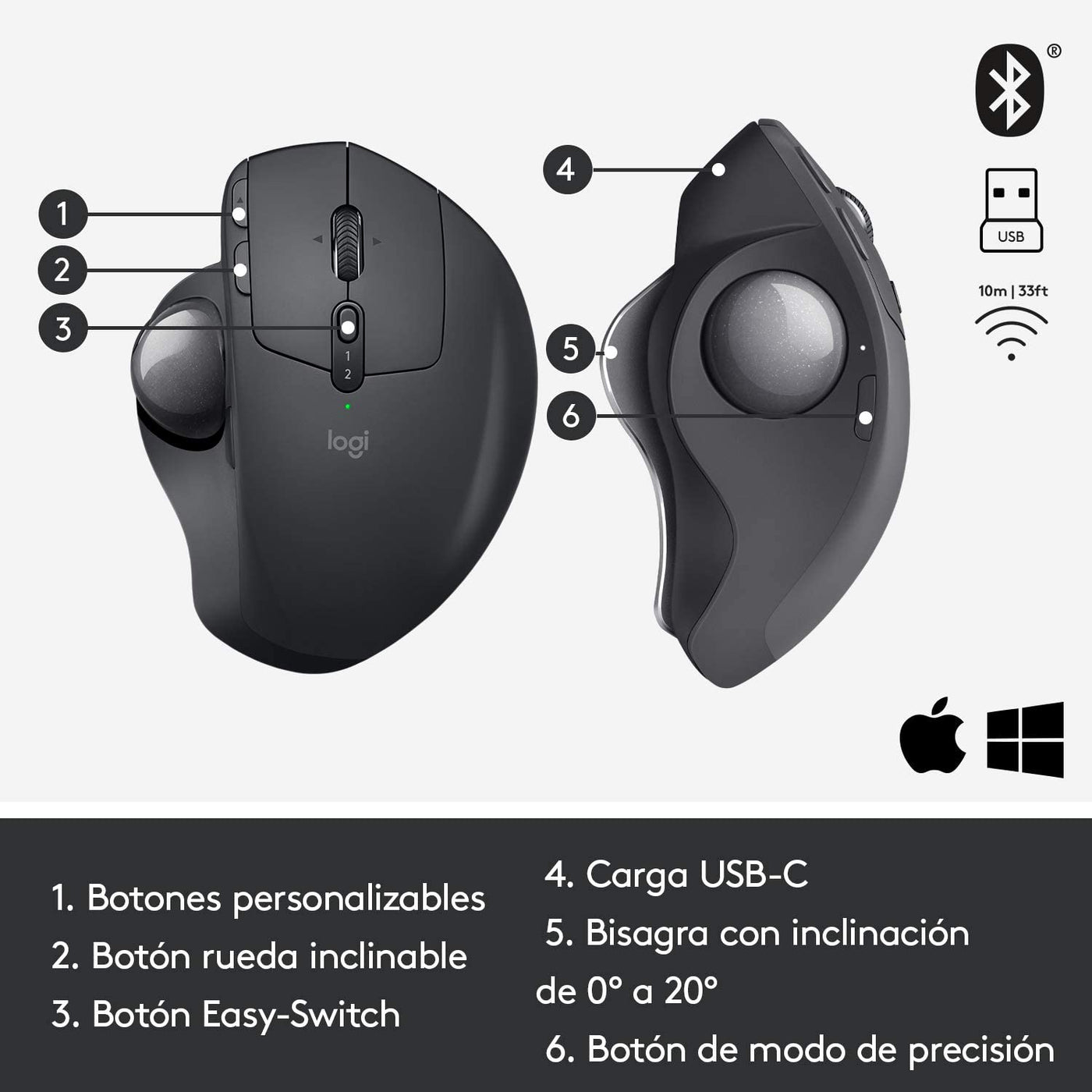 - Trackball inalámbrico avanzado MX Ergo