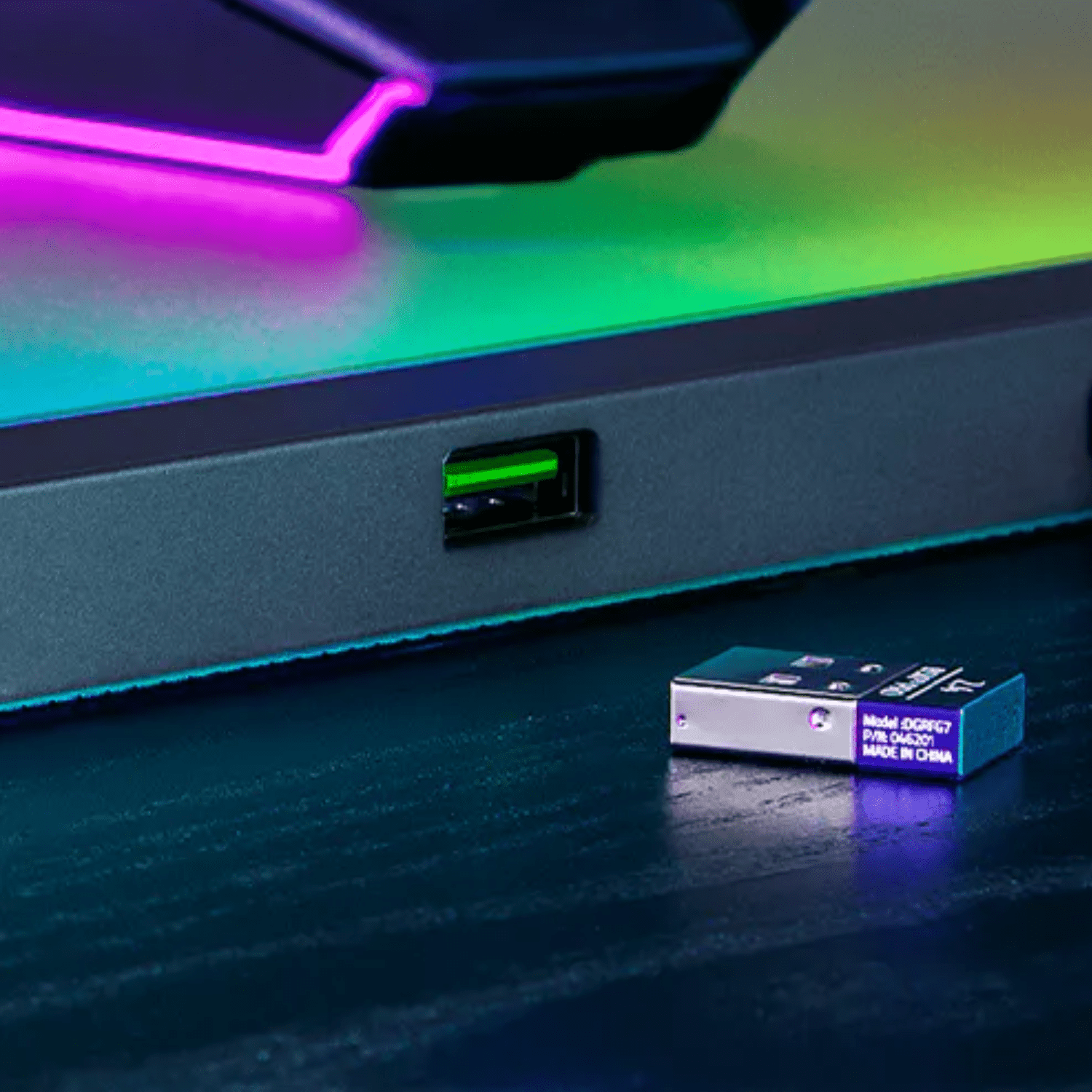Garantiza las mínimas interferencias y el máximo rendimiento inalámbrico para tu ratón con un puerto dedicado que funciona como puerto de transferencia para el dongle del ratón.