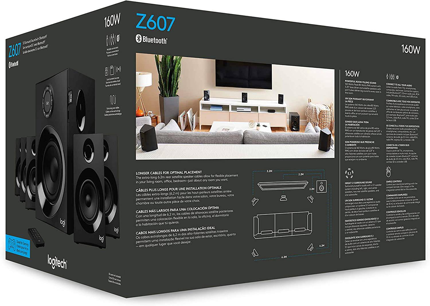 Disfruta de sonido potente desde cualquier dirección. Z607 convierte tu música estéreo en sonido envolvente para que disfrutes al máximo de tu audio.