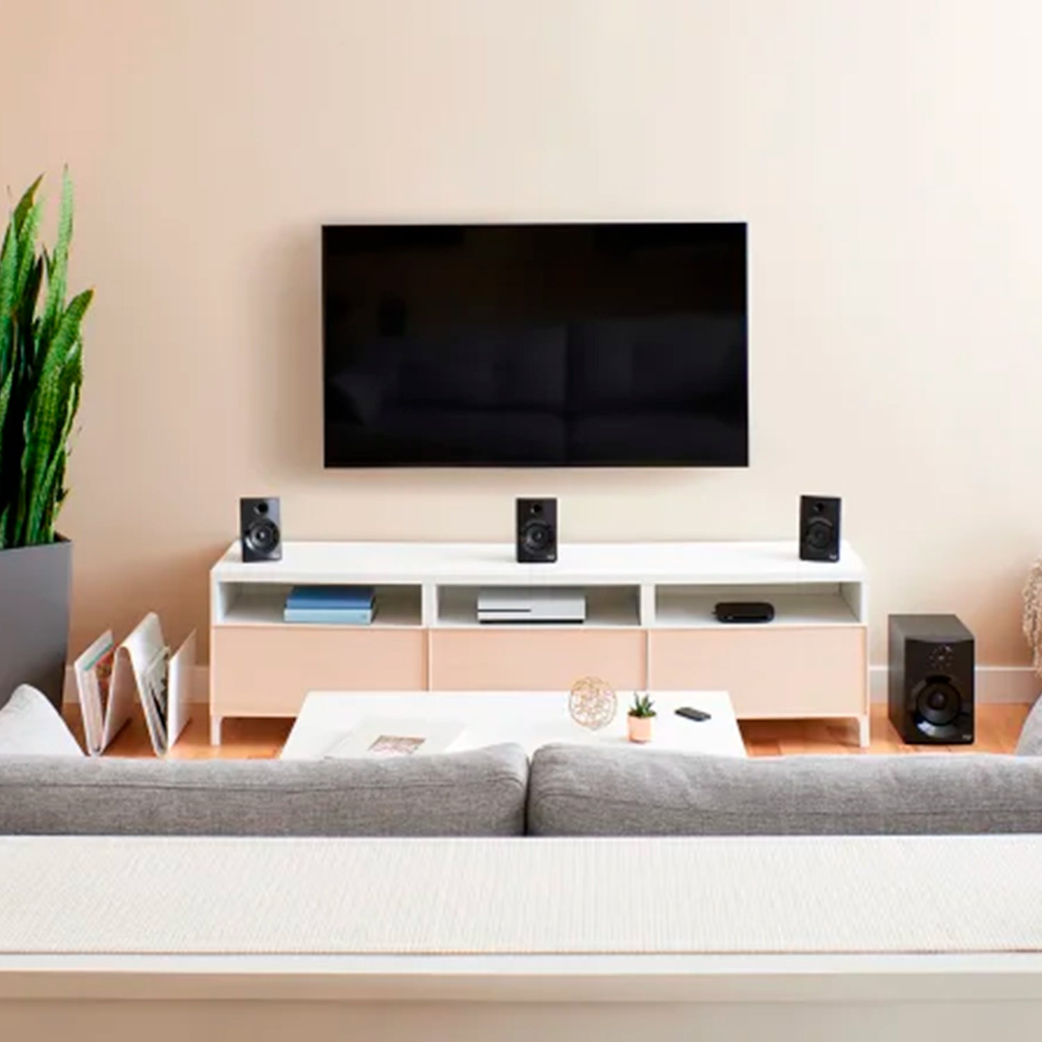 Los cables de los bocinas satélite posteriores extralargos de 6,2 m permiten una ubicación óptima en salas de estar, espacios de juego, oficinas, dormitorios, prácticamente en cualquier lugar que desees. Puedes colocar las bocinas sobre escritorios, consolas, mesitas auxiliares o montarlas fácilmente en la pared.3Los soportes de montaje no están incluidos.