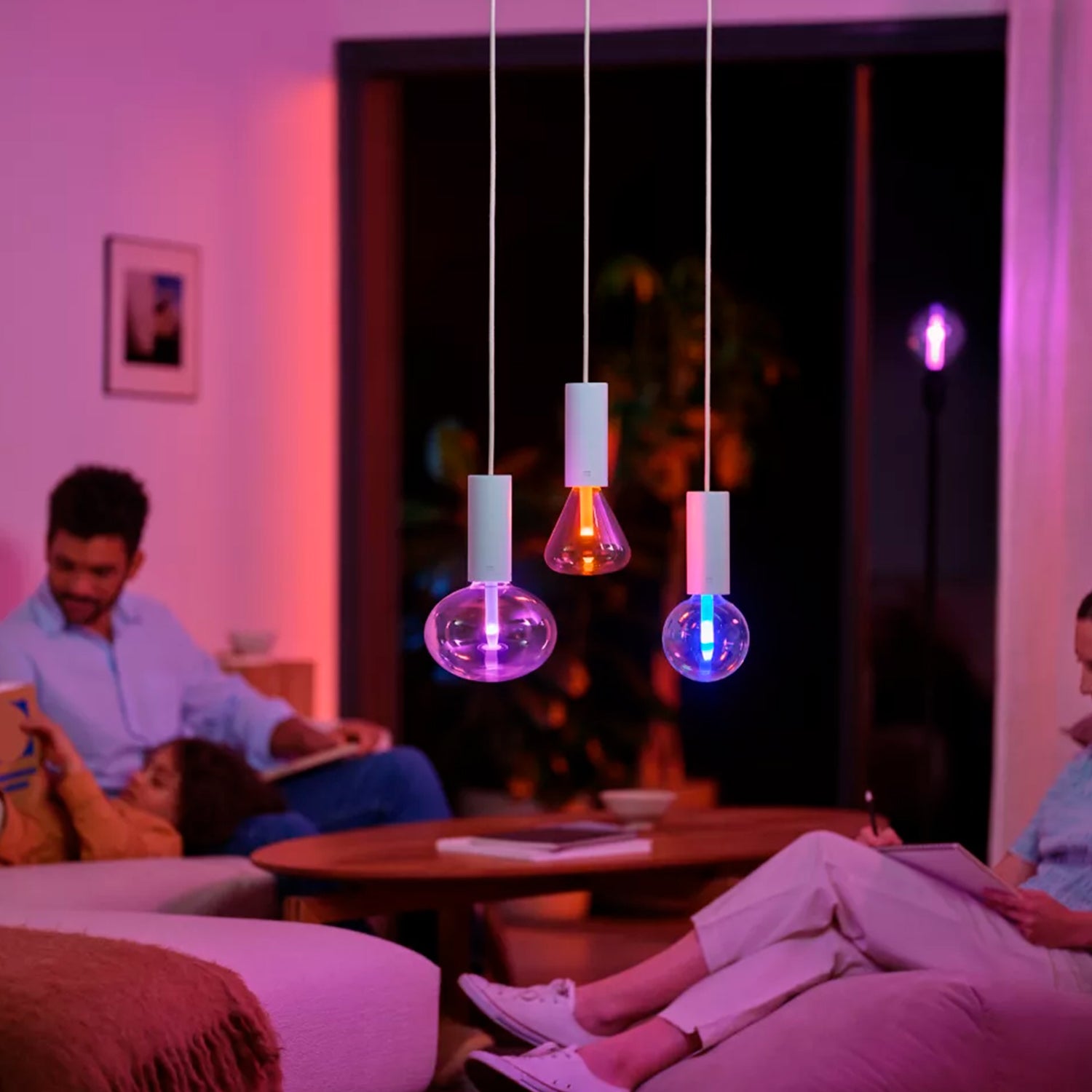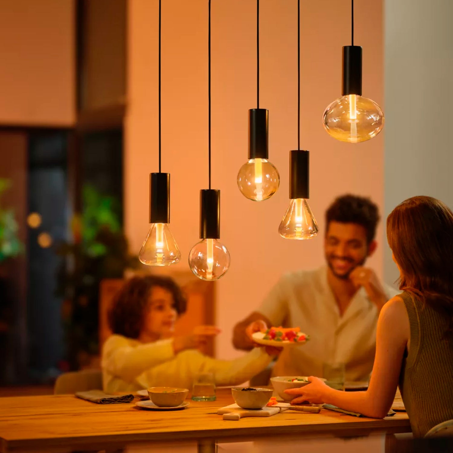 Sopladas a mano y fabricadas en cristal transparente, las bombillas Lightguide son toda una declaración de intenciones. Los reflejos de su tubo interior y su revestimiento juegan entre sí, creando un efecto de luz único que complementa a la perfección su llamativa forma de globo.