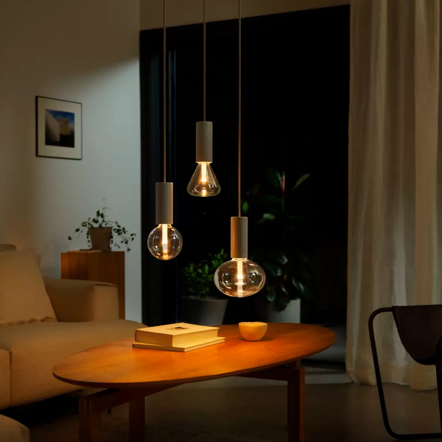 | Este cordón envuelto en tela y esta funda de forma elegante le permiten suspender las bombillas Lightguide sobre la mesa del comedor, a lo largo de la isla de la cocina o en cualquier otro lugar. |