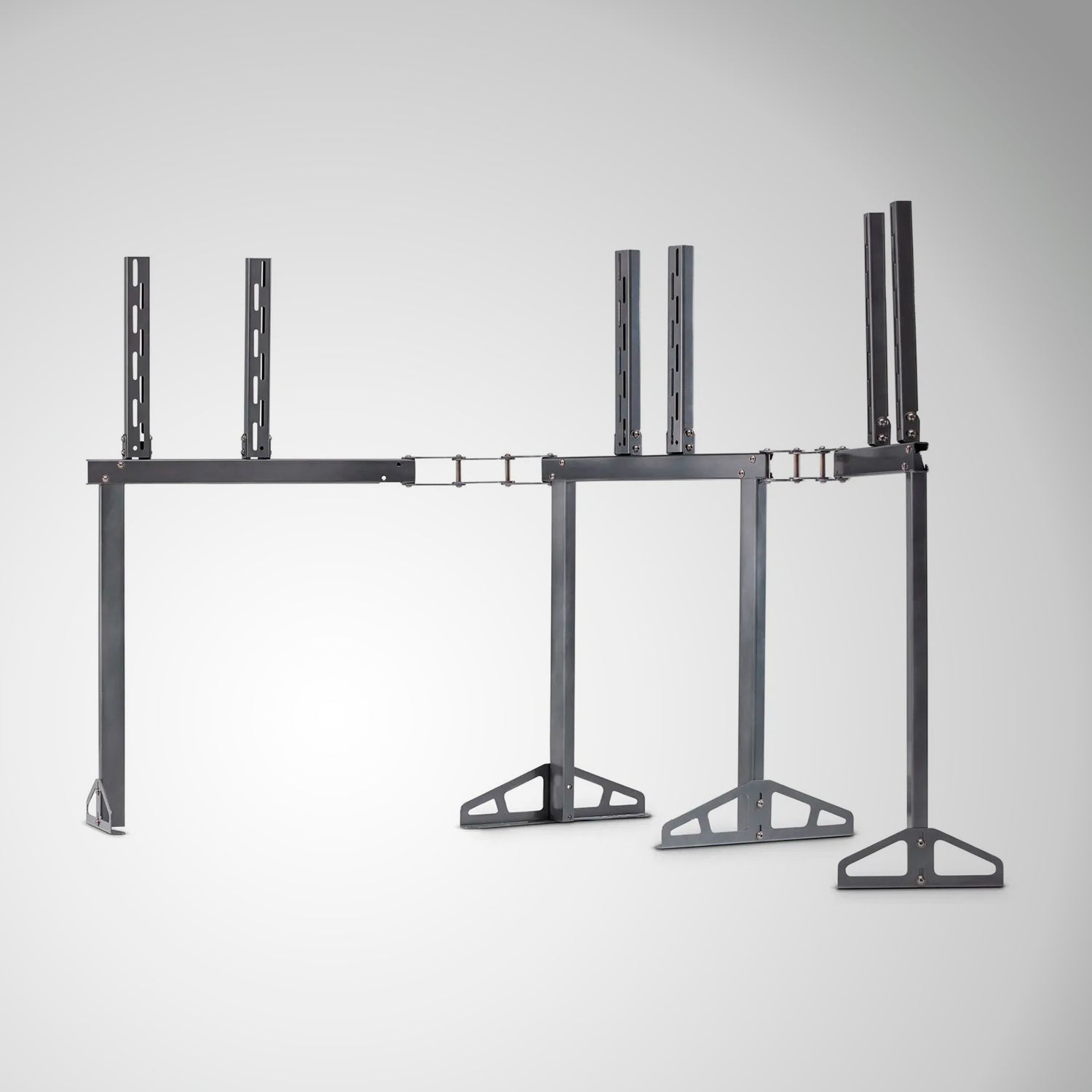 La personalización es sencilla gracias a la posibilidad de ajustar la altura y el ángulo para que coincidan con sus preferencias. Concéntrese en competir desde todos los ángulos posibles. Saluda a una experiencia de carreras realista con el Playseat® TV Stand Triple.