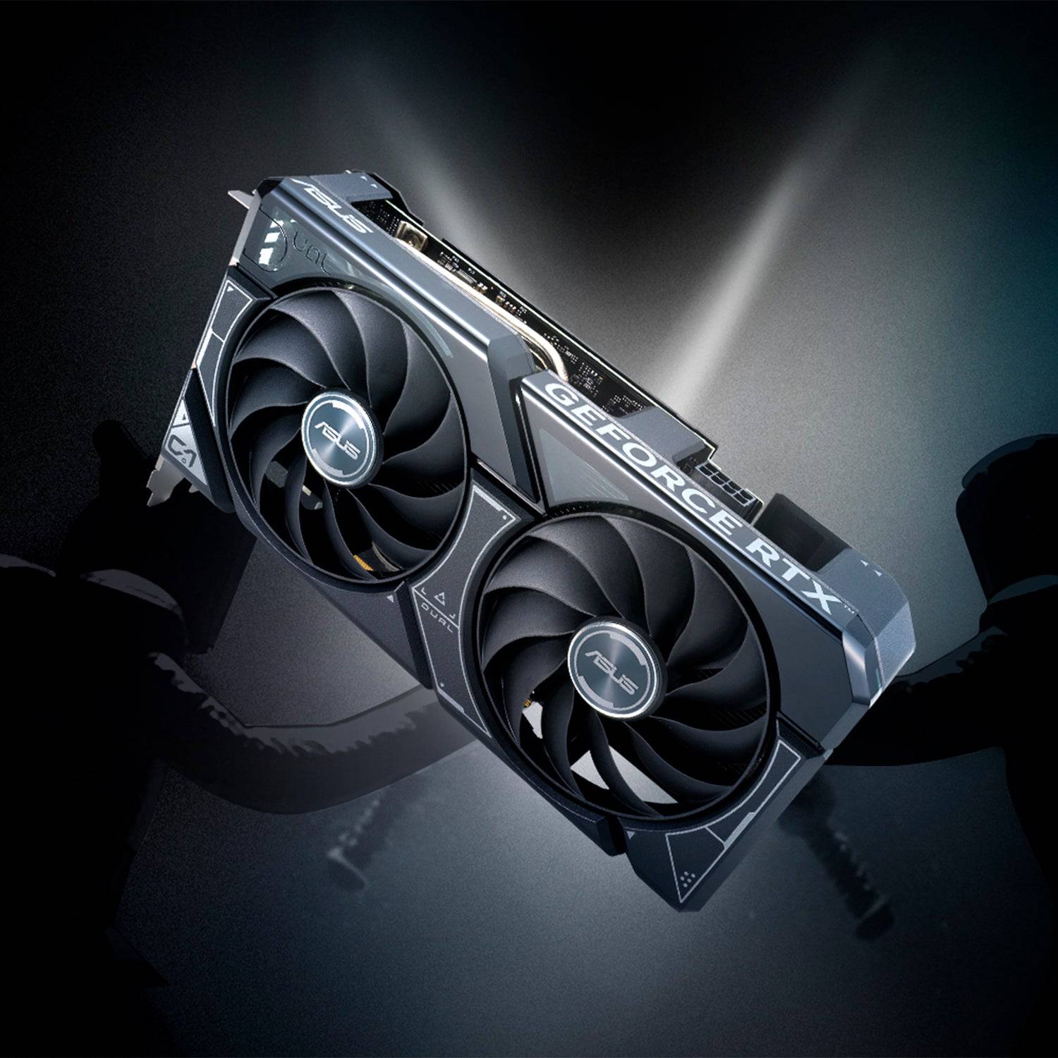 La ASUS Dual GeForce RTX™ 4060 fusiona un rendimiento térmico dinámico con una amplia compatibilidad. Las soluciones avanzadas de refrigeración de las tarjetas gráficas insignia, incluidos dos ventiladores con tecnología axial para maximizar el flujo de aire hacia el disipador térmico, se integran en la tarjeta de 26,7 cm de longitud y 2,56 ranuras, con lo cual se obtiene más potencia en menos espacio. Estas mejoras convierten a ASUS Dual en la elección perfecta para los jugadores que buscan un rendimiento gráfico potente en un diseño compacto.
