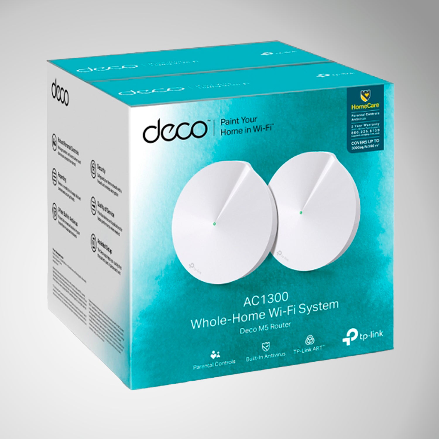 - Un paquete de tres Deco M5 ofrece Wi-Fi en un área de hasta 5500 pies cuadrados, mientras que un paquete de dos Deco M5 ofrece hasta 3800 pies cuadrados. Y si eso no es suficiente, simplemente agregue más Decos a la red en cualquier momento para aumentar la cobertura. †