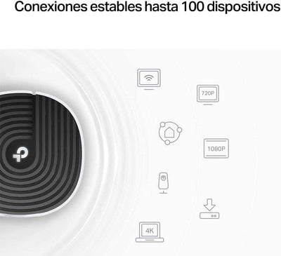 TP-Link Mesh significa que las unidades Deco trabajan juntas para formar una red unificada. Tu teléfono o tableta se conecta automáticamente al Deco más rápido a medida que te desplazas por tu casa, lo que crea una experiencia WiFi verdaderamente fluida. §